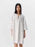 Kort klänning med broderade spetsdetaljer, snörning och 3/4-ärmar – perfekt för både vardag och fest! WHITE