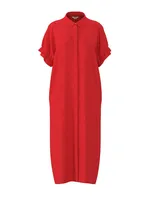 Denna skjortklänning kombinerar det klassiska med en modern twist. Klänningen har en rak passform med korta ärmar prydda med subtila volangdetaljer som ger ett mjukt och feminint uttryck. Den klassiska skjortkragen och den dolda knappstängningen framtill ger ett stilrent och sofistikerat intryck. Tillverkad i en luftig blandning av viskos och linne – perfekt för varma dagar då du vill känna dig både bekväm och välklädd. Bär den med sandaler för en avslappnad look eller styla med klackar och accessoarer för en mer uppklädd känsla.