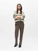 Byxorna är ett mångsidigt plagg som kan anpassas för olika stilar. För en sofistikerad och professionell look, para ihop dem med en blazer för en elegant helhet. Om du vill kan du istället omfamna den avslappnade stilen genom att kombinera dina byxor med en T-shirt och sneakers för en mer ledig men fortfarande chic outfit. Byxorna är i vävt material, som är slitstarka och robusta, är särskilt bra för kontorskläder eller snygga toppar. Eftersom de oftast inte har stretch, ger de ett strukturerat och stilrent intryck som håller hela dagen.