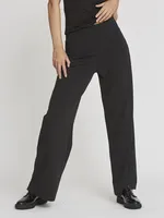 GLUT-PA.A är ett par höga svarta byxor med breda ben och elastisk midja, vilket ger en avslappnad och bekväm passform.