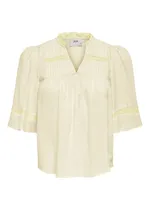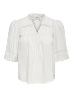 Bomullstopp från JDY med vackra spetsdetaljer och V-ringning. De dekorativa sömmarna och 3/4-ärmarna med volanger ger ett feminint och stilrent uttryck. Tillverkad i 100% bomull med bekväm, normal passform.