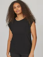 En stilren topp i mjuk jersey med rund halsringning och en avslappnad passform. Designad med vadderad kant och rak fåll för en modern look. BLACK