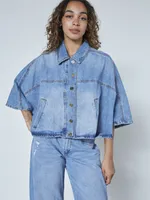 FELKA-JA1 är en kort denimjacka med vida, korta ärmar, krage och knäppning framtill.