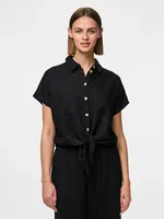 Klassisk skjorta med skjortkrage, korta ärmar, knappstängning och knytdetalg. Tillverkad i en luftig blandning av viskos och linne för en bekväm och stilren look. BLACK
