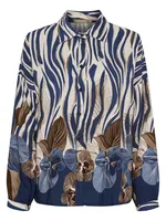 Mönstrad skjortblus från Marta du Château med avslappnad passform och elegant fall. Klassisk krage, knappslå och uttrycksfullt mönster som lyfter din stil.