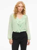 Viane L/s V-neck Frill Top - N